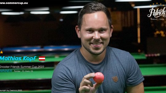 12. August 2022William Clark (GBR) gewinnt ” 12. Snooker Friends Summercup 2022″ Turnier gegen Mathias Kopf (AUT), 3. jeweils Peter Manser (AUT)… Weiterlesen