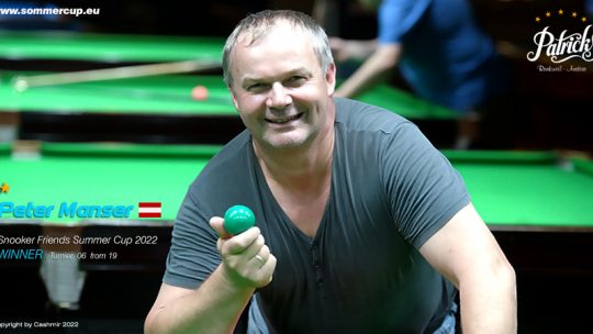 22. Juli 2022Peter Manser (AUT) gewinnt ” 5. Snooker Friends Summercup 2022″ Turnier gegen William Clak (GBR), 3. jeweils Kyllönen Benjamin (AUT)… Weiterlesen