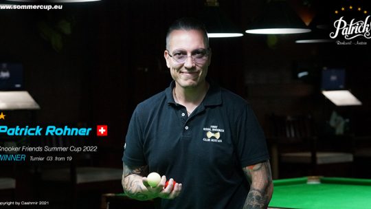 Patrick Rohner (SUI) gewinnt ” 3. Snooker Friends Summercup 2022″ Turnier gegen Manfred Leumann (SUI) 3. jeweils Nico Rohner (SUI)… Weiterlesen