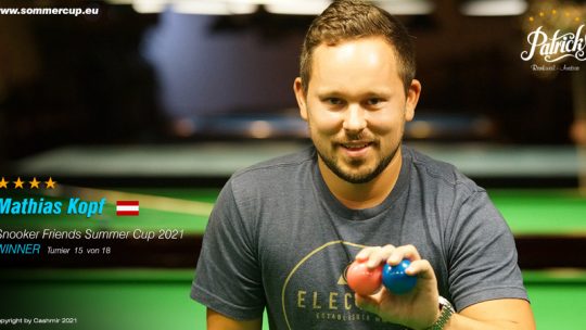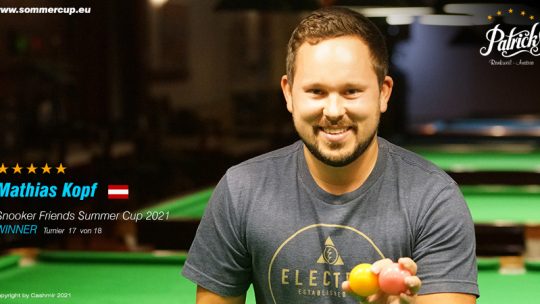 Mathias Kopf (AUT) gewinnt ” 15. Snooker Friends Summercup 2021″ Turnier gegen Samuel Hartmann (AUT) 3. jeweils Rainer Wehinger (AUT)… Weiterlesen