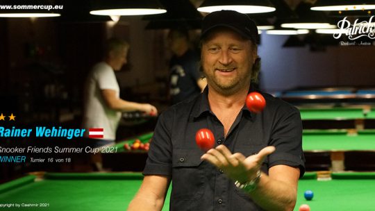 Rainer Wehinger (AUT) gewinnt ” 15. Snooker Friends Summercup 2021″ Turnier gegen Mathias Kopf (AUT) 3. jeweils Thomas Gsteu (AUT)… Weiterlesen