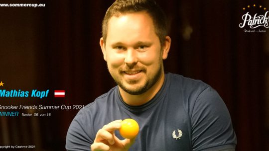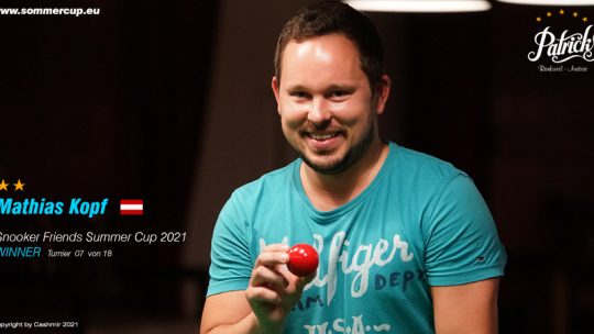 Mathias Kopf (Aut) gewinnt ” 7. Snooker Friends Summercup 2021″ Turnier gegen Alexander Denz (AUT) 3. jeweils Patrick Rohner (SUI)… Weiterlesen