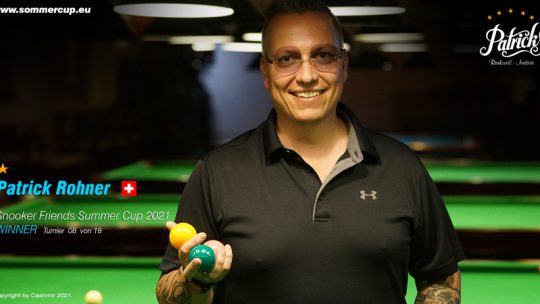 Patrick Rohner (SUI) gewinnt ” 8. Snooker Friends Summercup 2021″ Turnier gegen Nico Rohner (SUI) 3. jeweils Thomas Gsteu (AUT)… Weiterlesen
