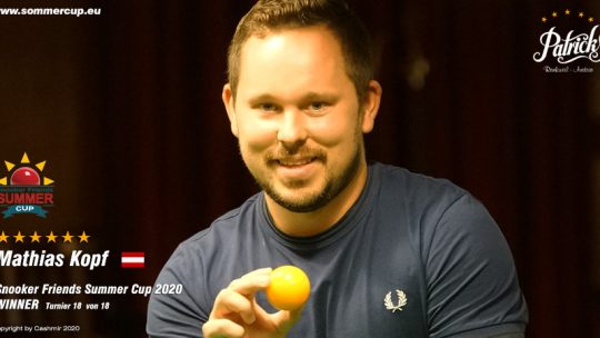 Mathias Kopf (AUT) gewinnt ” 18. Snooker Friends Summercup 2020″ Turnier gegen Roger Hohl (SUI) 3. jeweils Patrick Rohner (SUI)… Weiterlesen