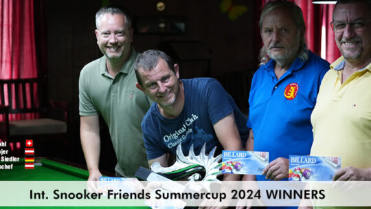 Am vergangenen Wochenende fand der Snooker Friends Summercup 2024 in angenehmer und freundschaftlicher Atmosphäre statt. Insgesamt konnte sich Roger Hohl… Weiterlesen